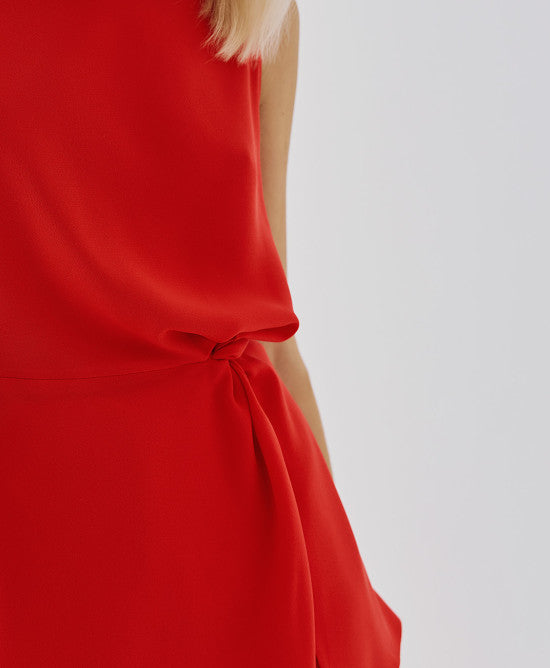 Haut sans manches avec un détail noué et une découpe sur le devant. Il présente un dos ouvert et se ferme avec une fermeture éclair au dos. Choisissez-le pour des looks élégants.
