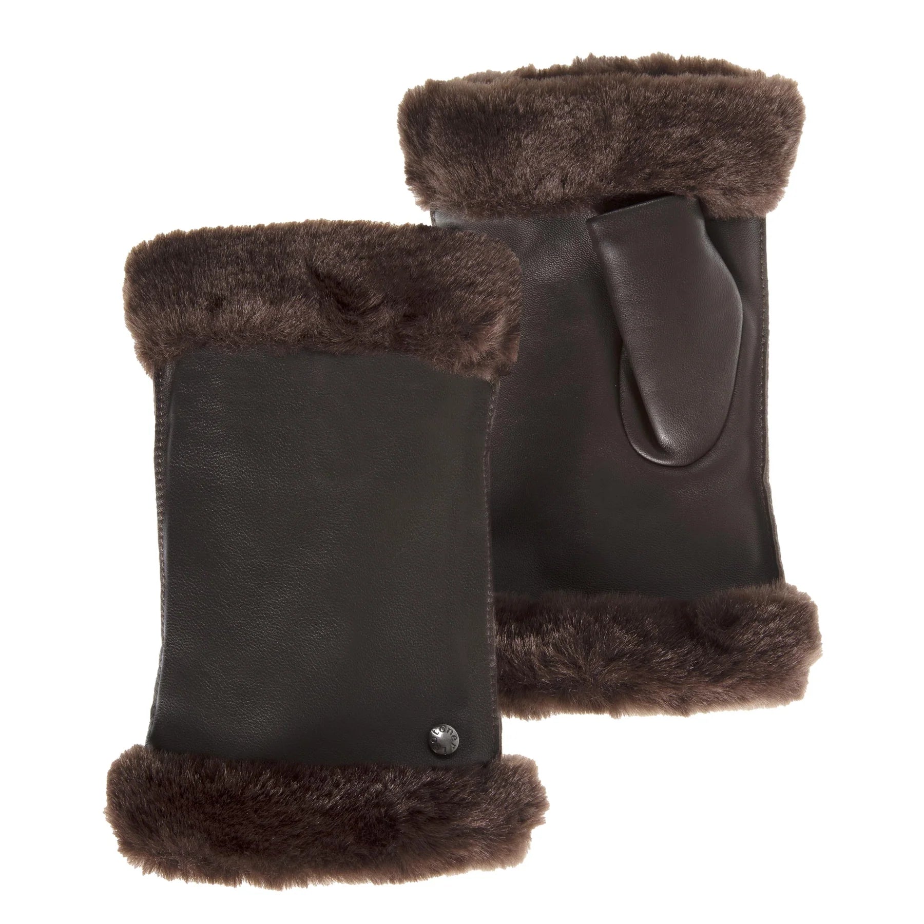 Parfait pour un look chic et cocooning, ces mitaines noires en cuir d'agneau pleine fleur sont doublées fausse-fourrure. Ses bords en fausse-fourrure noirs apportent douceur et chaleur.