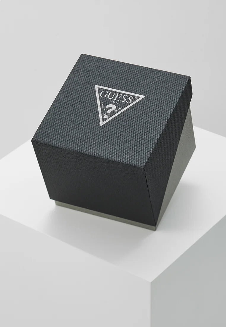 Montre analogique avec le boîtier en acier inoxydable et le bracelet en cuir.